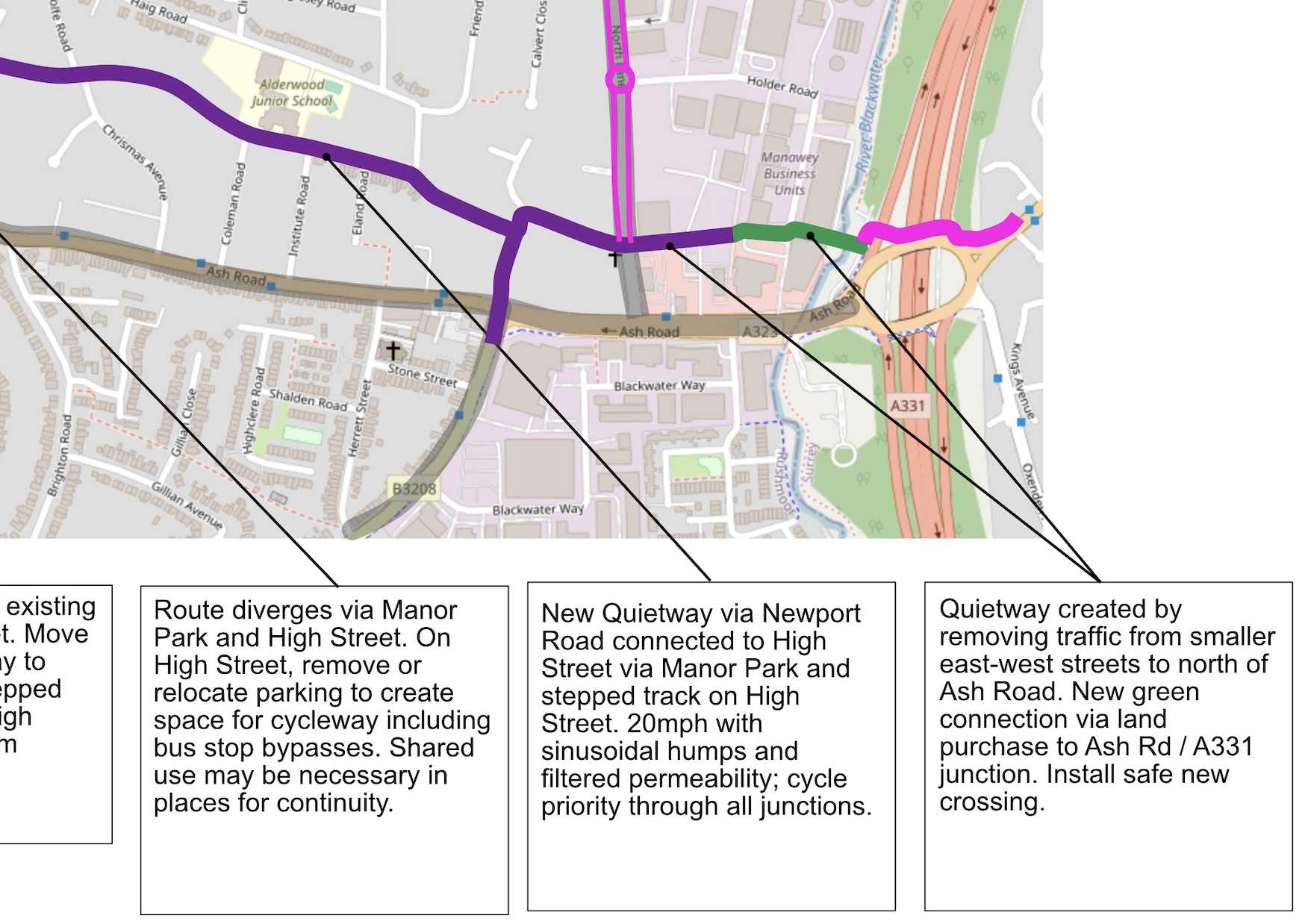 ActivePlanning works with engineering partners to offer comprehensive route studies which look at (a) the general feasibility of introducing pedestrian and cycle routes on selected corridors and (b) site specific designs for key locations including junctions, typical design detailing on links, and new crossings.